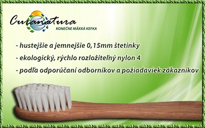 táto zubná kefka s mäkkými štetinami je odpoveďou na rady dentálnych hygienikov a požiadavky zákazníkov. Kvalitou a dizajnom dopĺňa doterajší sortiment, no svojou mäkkosťou ho rozširuje. Cenovo je posadená na úrovni našich Curanatura zubných kefiek a osadená je jemnejšími a hustejšími štetinkami pre správne a zdravé čistenie zubov.